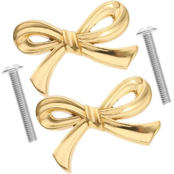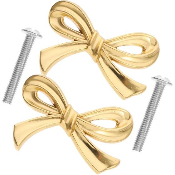 Подходящий размер для универсальности: Общая длина: 2,75 дюйма / 7 см, Ширина: 1,97 дюйма/5 см, длина отверстия для винта: 0,9 дюйма/ 2,3 см, эти золотые ручки-бантики универсальны и идеально подходят для широкого спектра применений