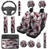 Красные чехлы на сиденья автомобиля с паутиной, с чехлом на рулевое колесо, подушкой для подлокотника, накладками на ремни безопасности, подстаканником с брелоком, универсальный комплект для защиты автомобиля