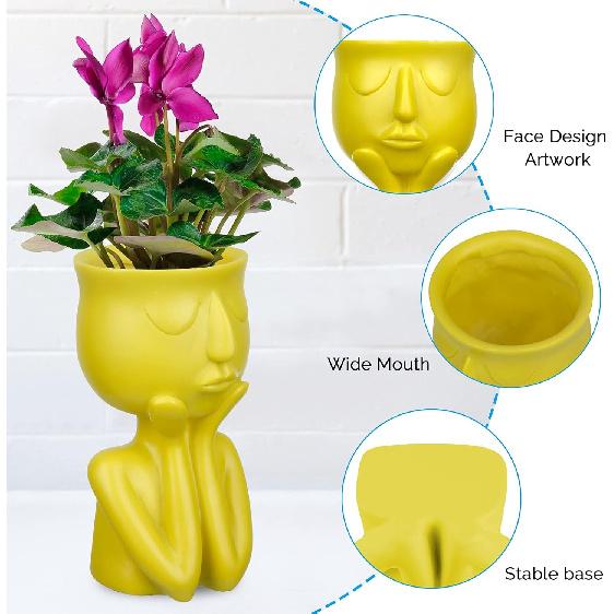 Смола Голова Кашпо Лицо Цветочный Горшок 6 дюймов Крошечные Человекообразные Цветочные Вазы Горшки для Суккулентов Настольное Украшение для Дома Офиса Садоводства В Помещении и На Открытом Воздухе