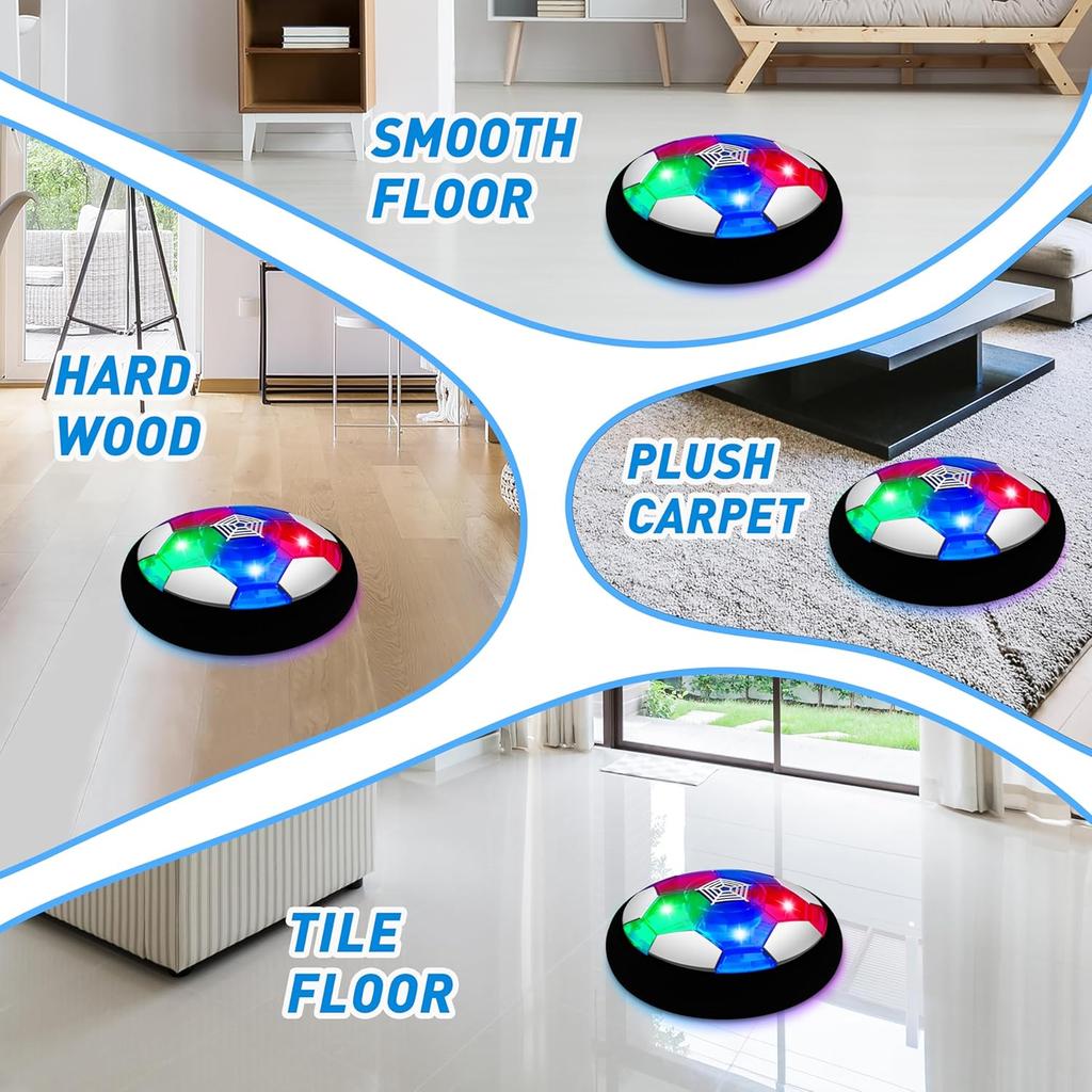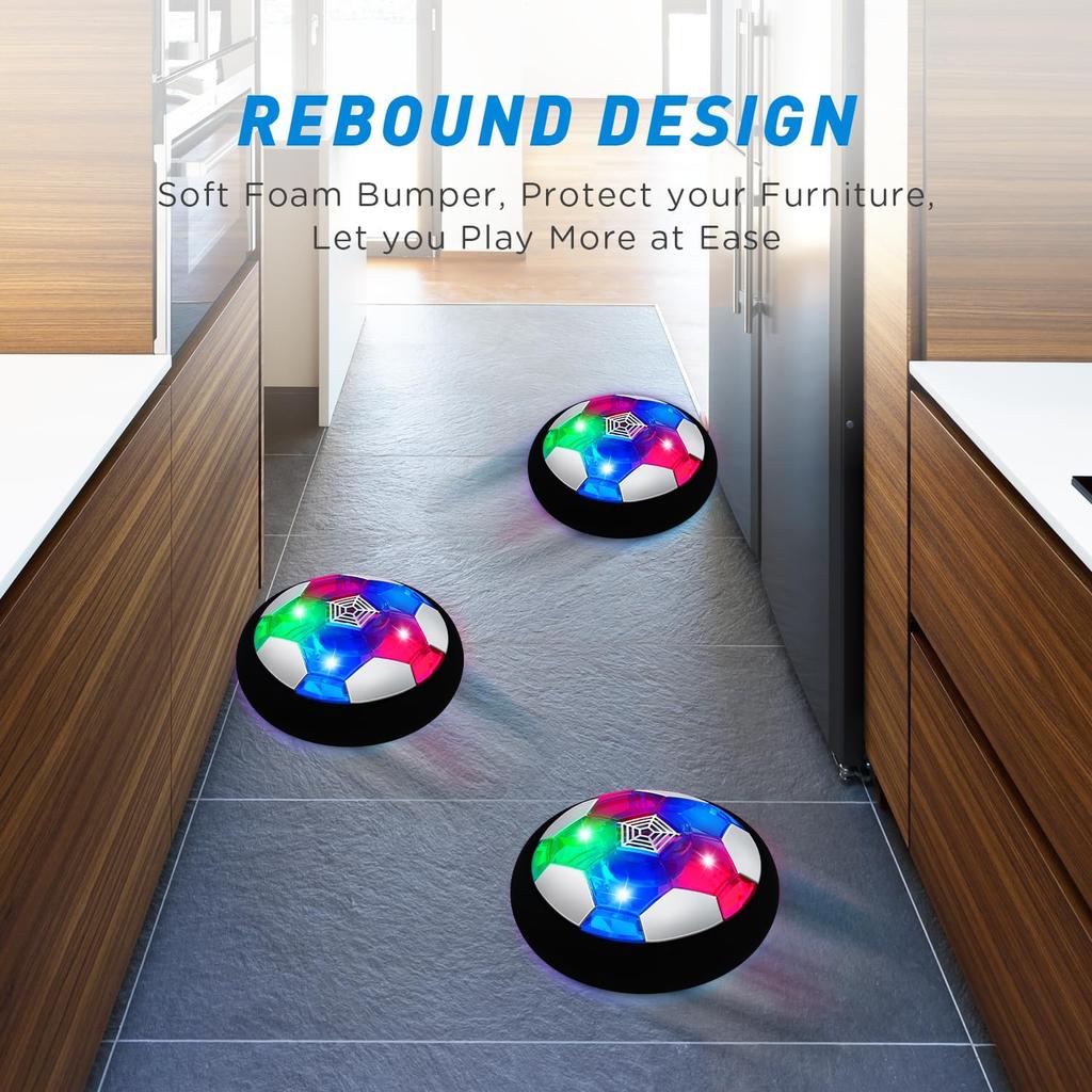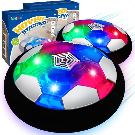 KKONES Детские игрушки Парящий футбольный мяч (Набор из 2), Работающий от батареек парящий в воздухе футбольный мяч со светодиодной подсветкой и мягким пенопластовым бампером для игры в помещении и на улице,