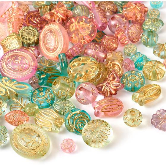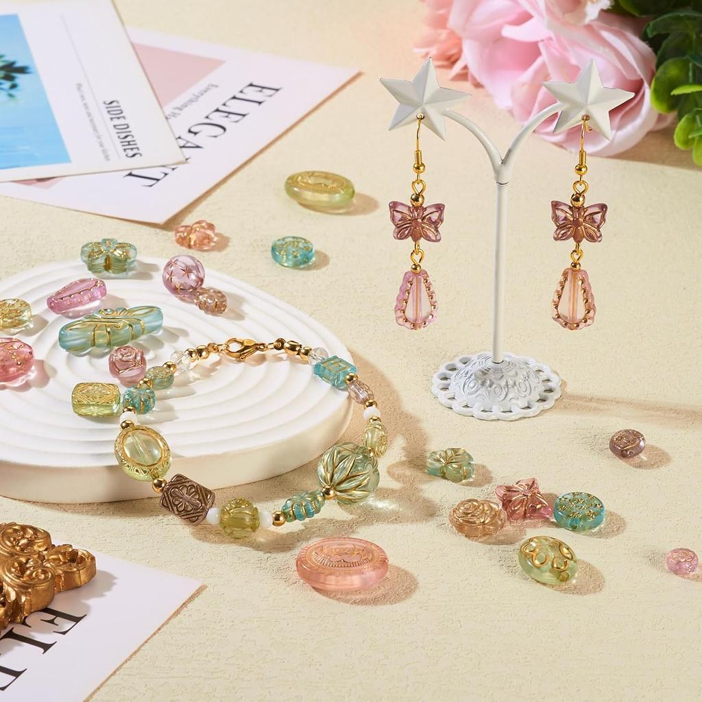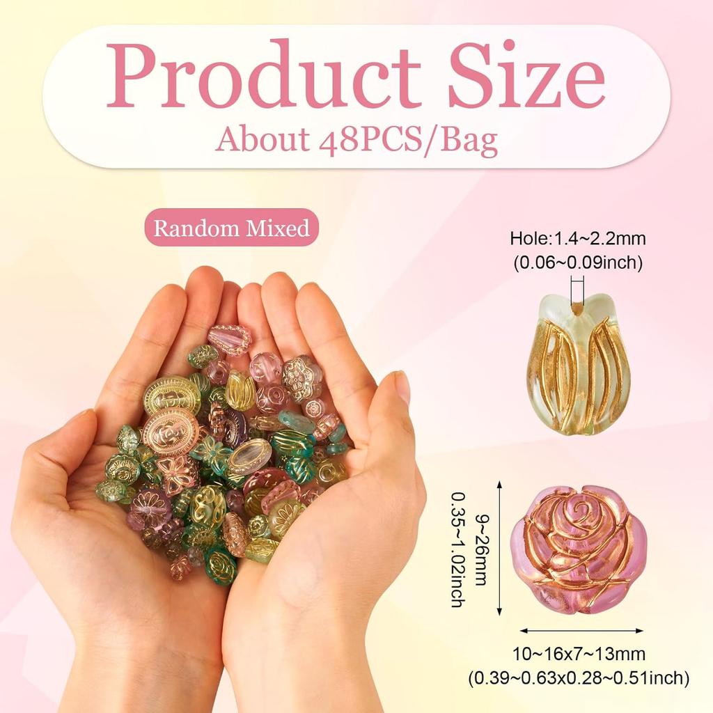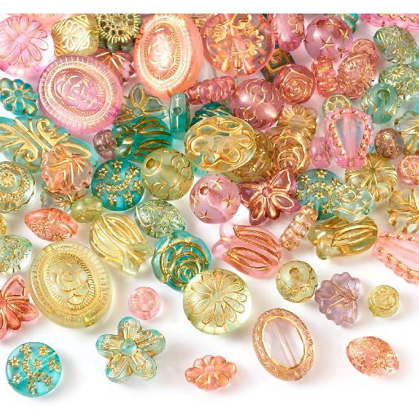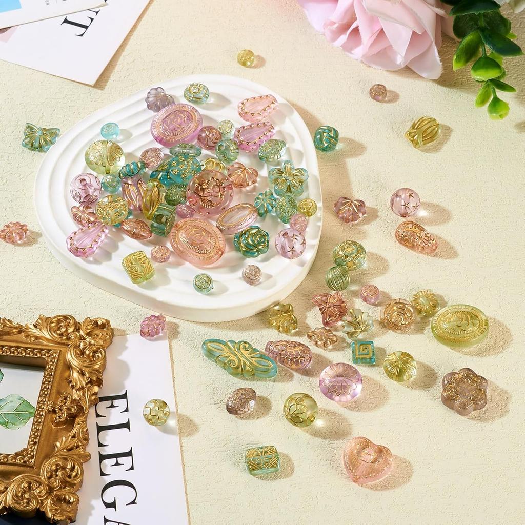FASHEWELRY 48 шт. Ассорти Астетические Бусины Микс Акриловый Пластик Богемные Цветок Бабочка Сердце Бусины Металлические Переплетенные Разноцветные Винтажные Насыпью для Ювелирных Изделий