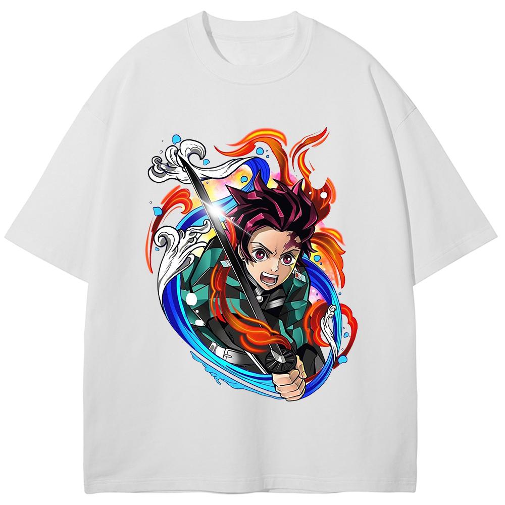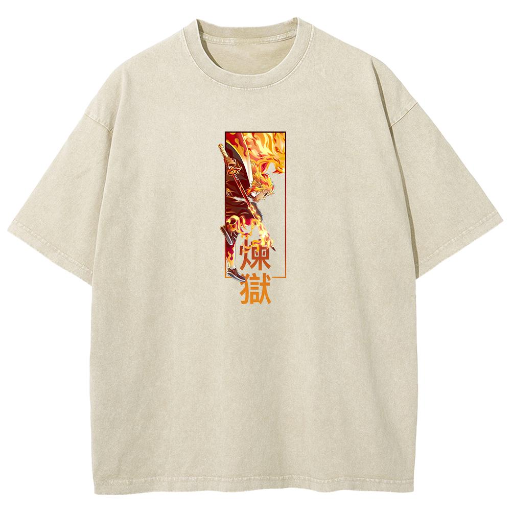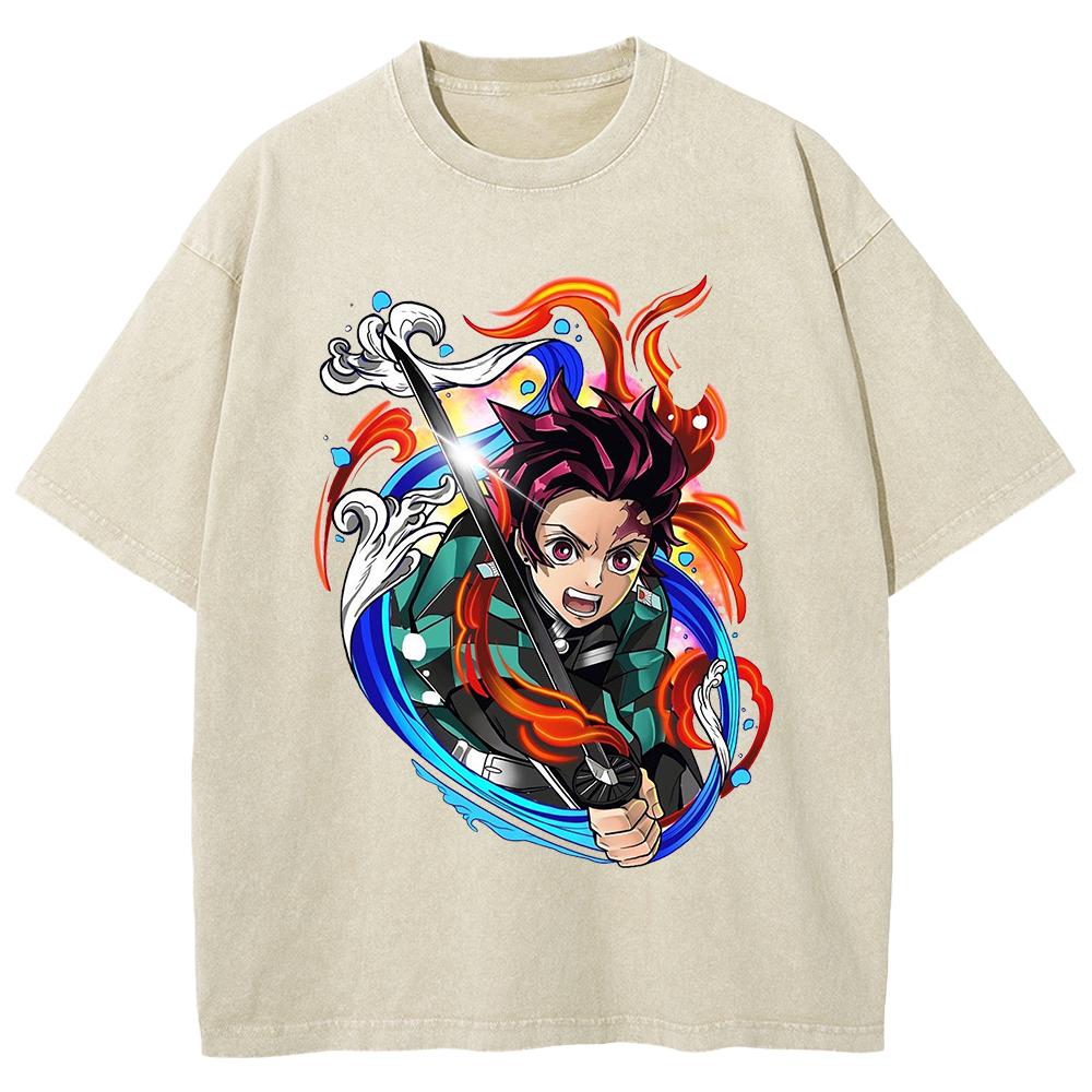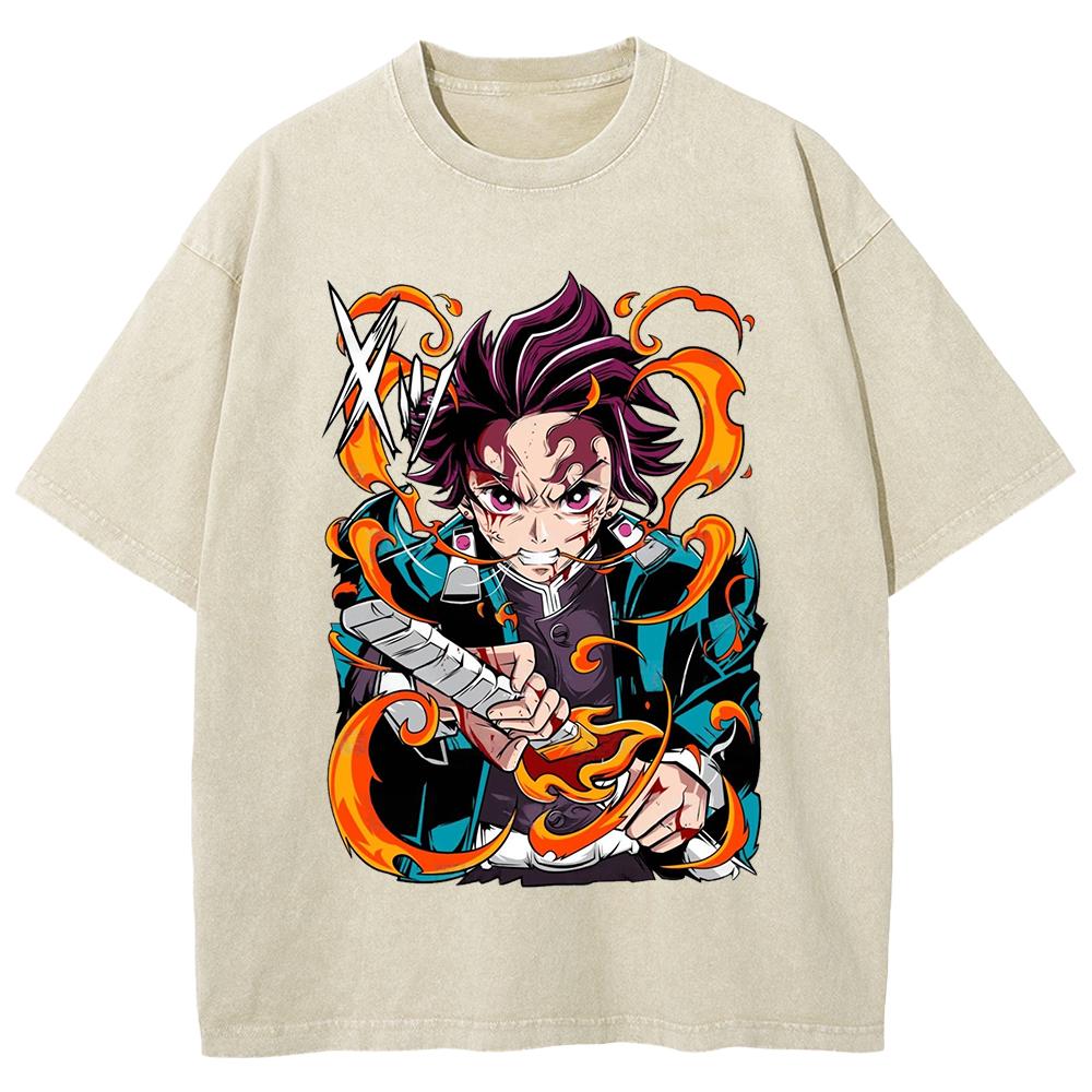 Аниме Клинок, рассекающий демонов Камадо Тандзиро Принт Футболка Мужская Манга Хлопковые футболки Винтажная выстиранная футболка Харадзюку Мужская футболка оверсайз