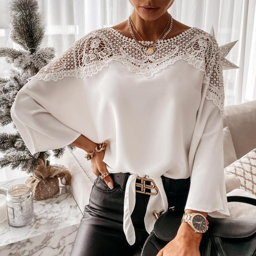 GMXIA Женские модные повседневные однотонные блузки и рубашки с круглым вырезом и длинным рукавом с принтом