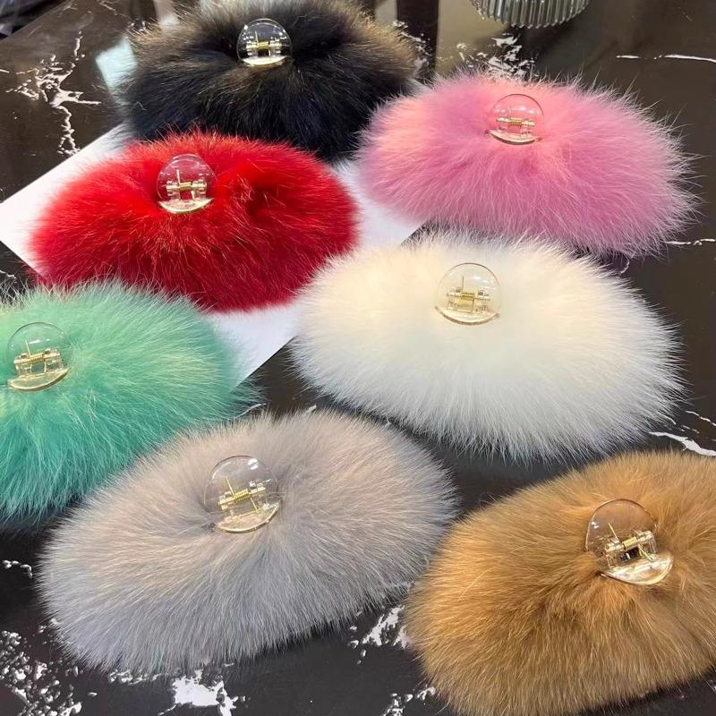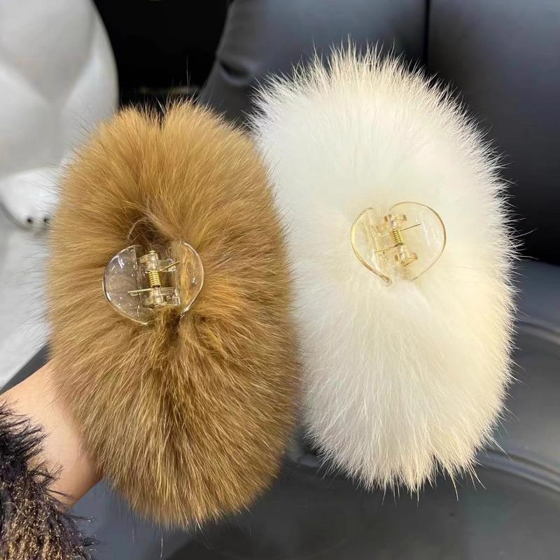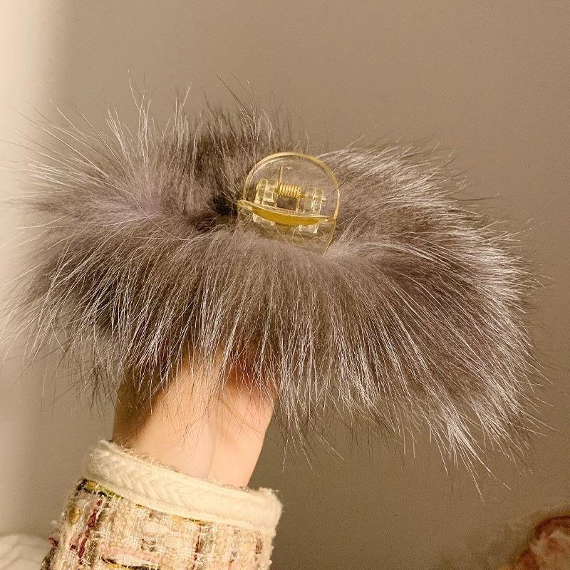 Плюшевая заколка для волос из меха лисы, заколка-краб для затылка, большая заколка-акула, головной убор, аксессуар для волос