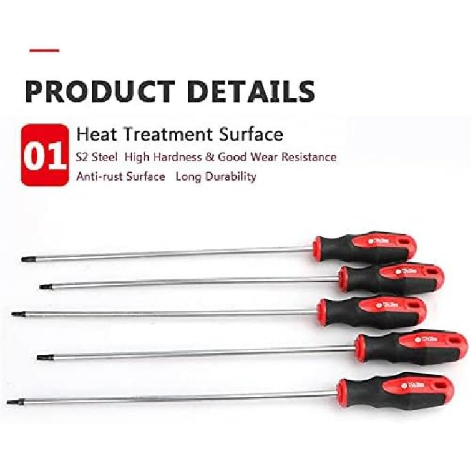 Сверхдлинный набор отверток Torx, 5 шт. T15-T30 Магнитные отвертки Длина стержня 12"/300 мм Общая длина 16"/400 мм Защита от несанкционированного доступа Сталь S2