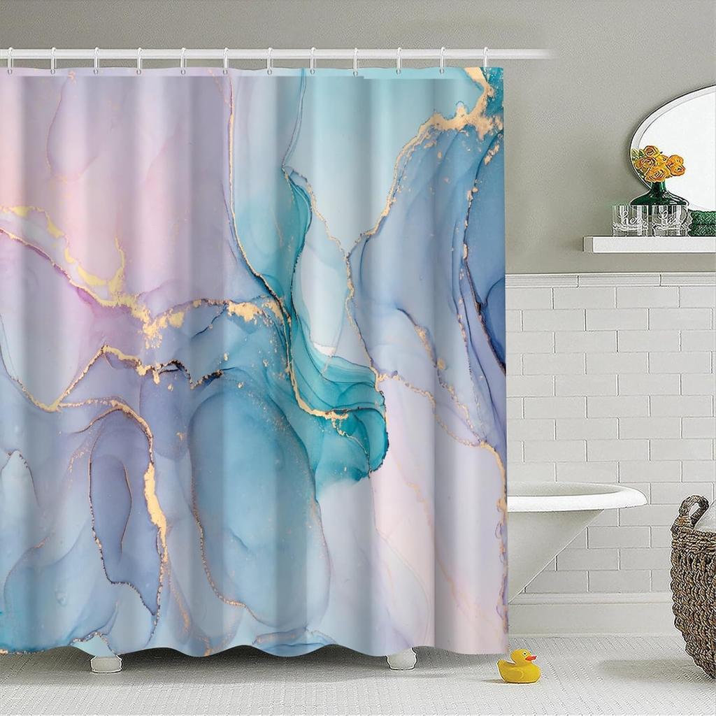 Мраморная шторка для душа 72x72 дюйма для ванной комнаты, абстрактная, бледно-розовая, голубая, перегородка для ванной, украшение для отеля, современная, минеральная, водонепроницаемая ткань
