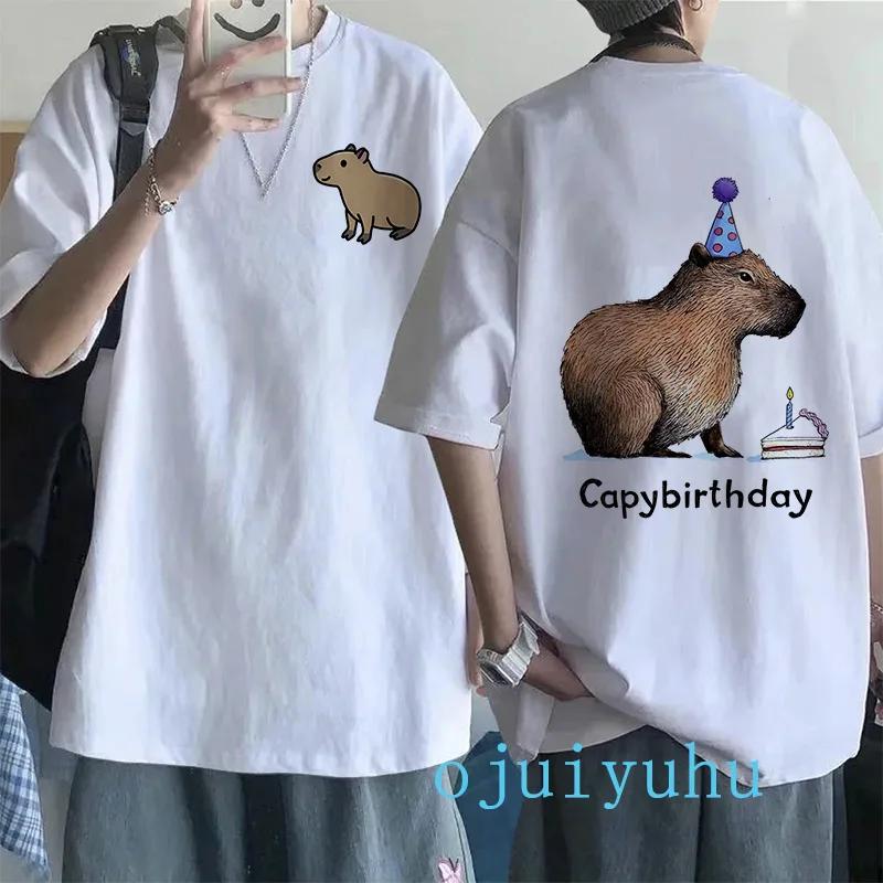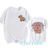 Модная футболка с капибарой для мужчин/женщин, футболка европейского размера, забавные футболки с капибарой в стиле Харадзюку, топы с мультяшным манга Y2k 90-х годов, гранж-футболка, одежда