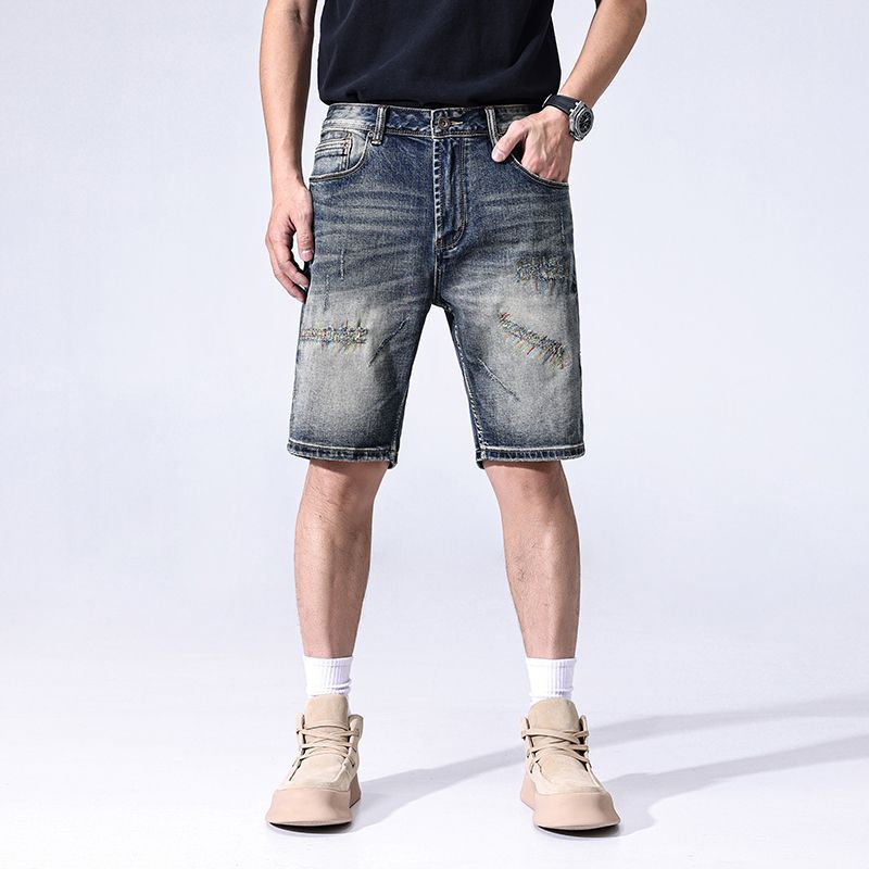Новые Ретро Рваные Джинсовые Шорты Мужские Летние Тонкие Брюки Пятиточки Повседневные Брюки Средней Длины