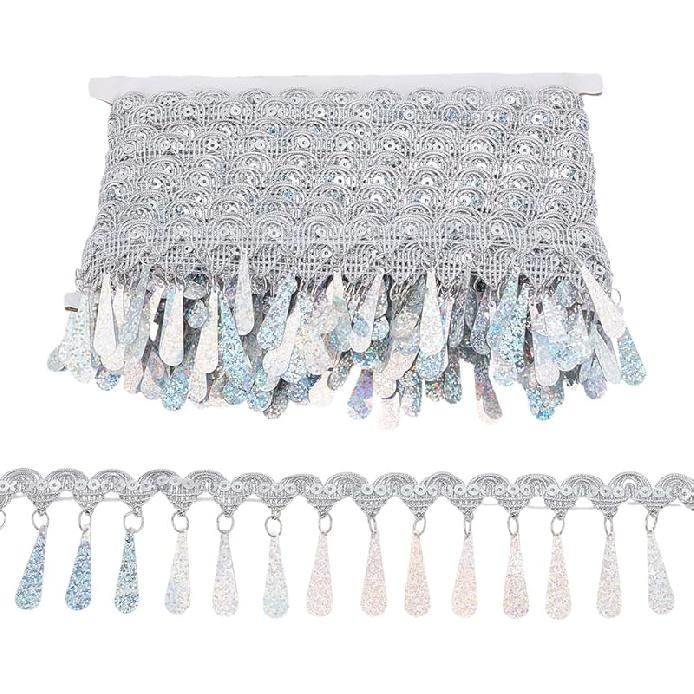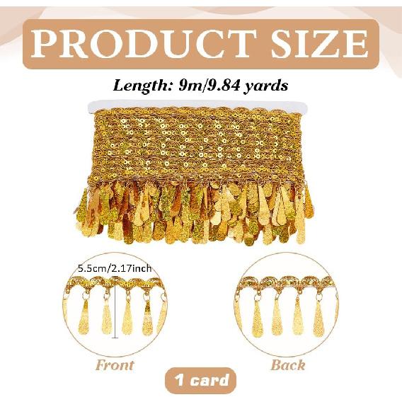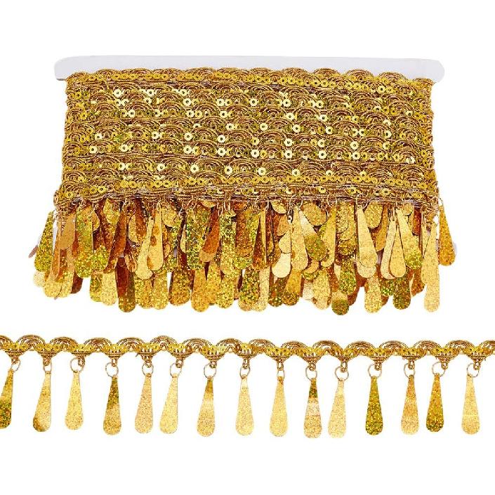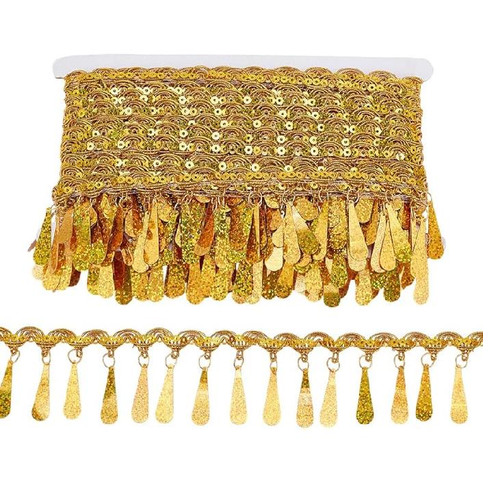 PH PandaHall 10 ярдов Золотая бахрома с пайетками, 2,2 дюйма Тканевая декоративная отделка Золотая окантовка Отделочная тесьма Швейная лента для штор Абажуров Ремней