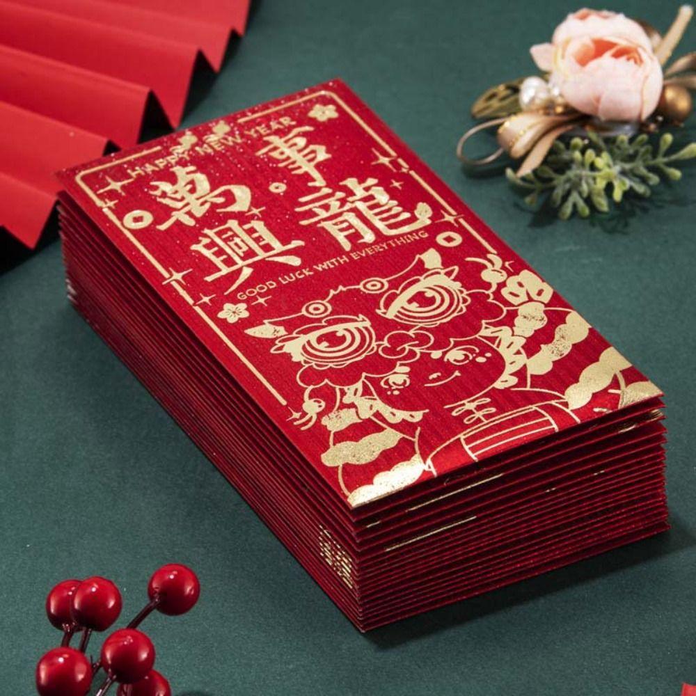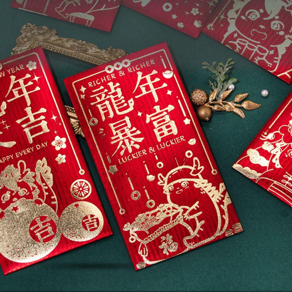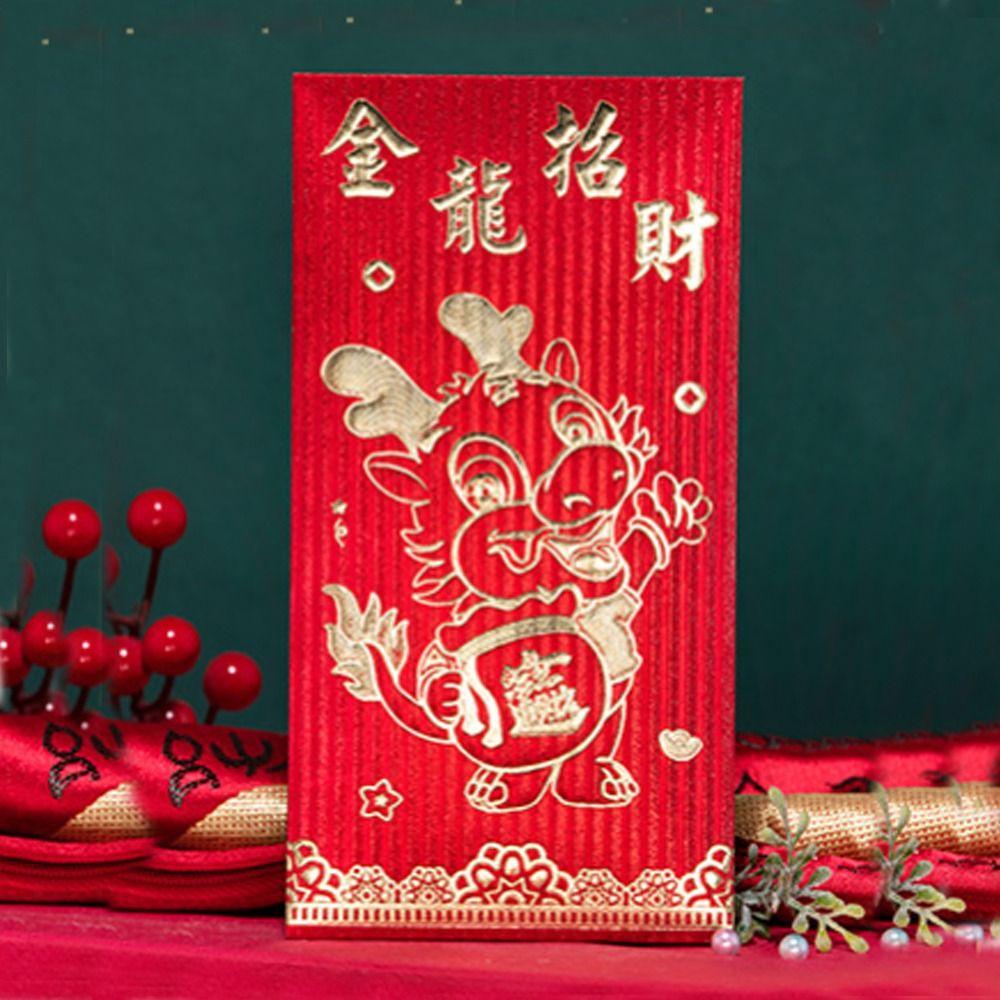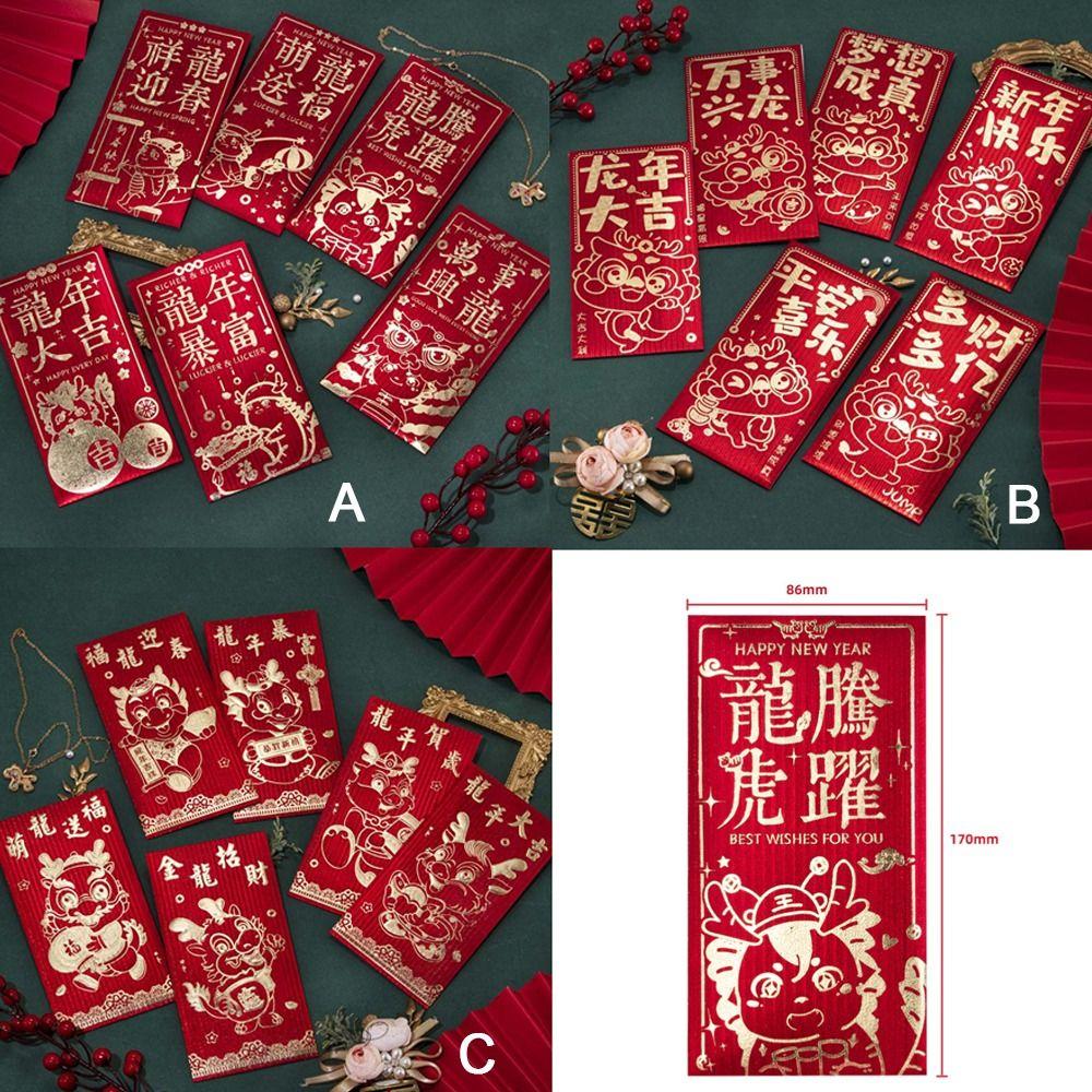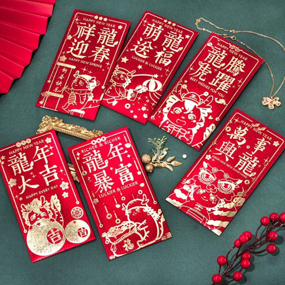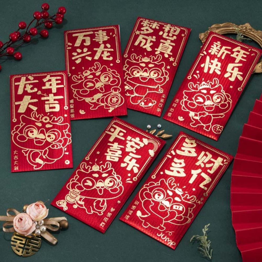 6 шт. Мультяшный Дракон Карман для Денег Китайский Стиль Денежные Мешочки Китайский Красный Конверт Праздник Весны