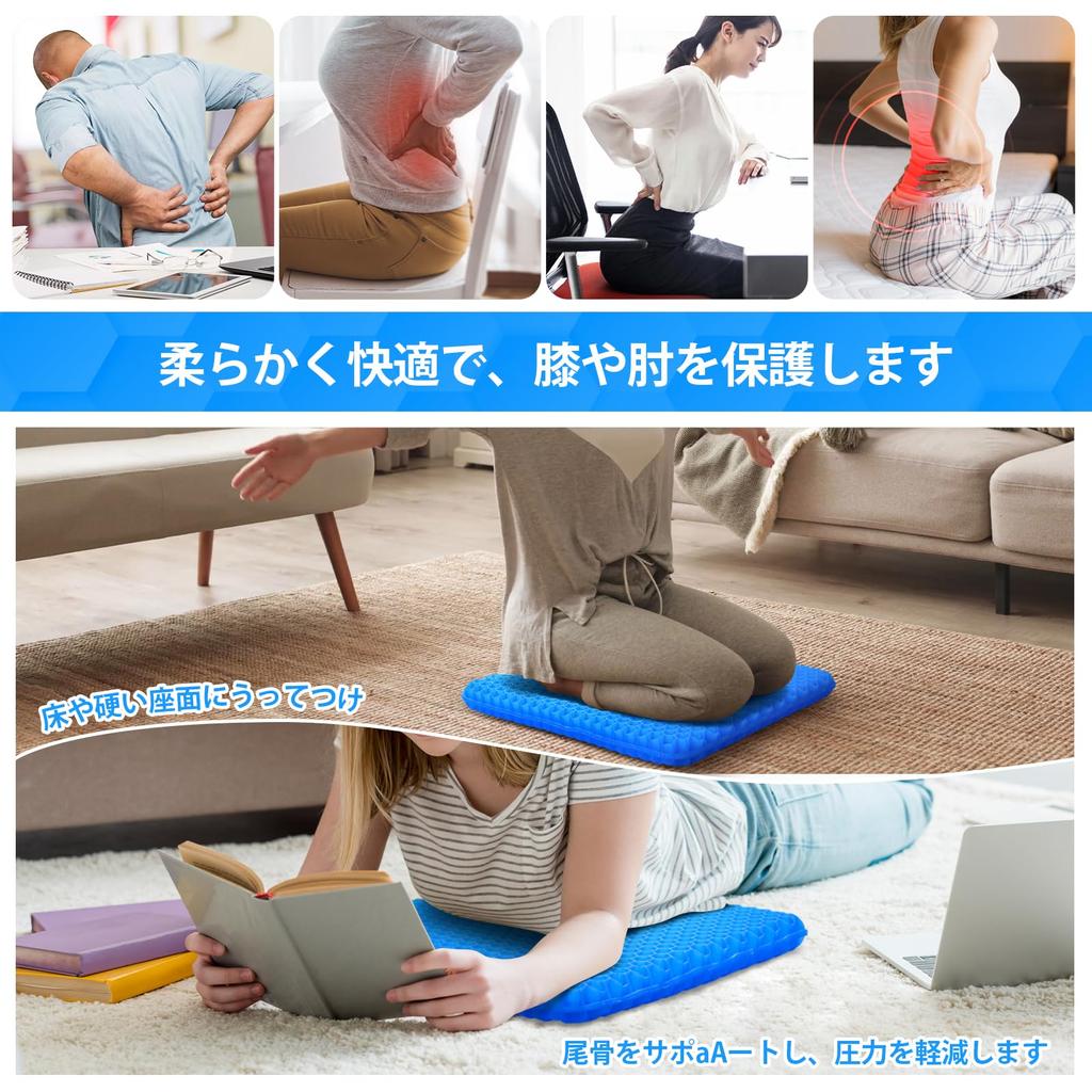 [Удобная поза снижает физическую усталость] Сидение в течение длительного времени может вызвать проблемы с бедрами и поясницей.. Эта гелевая подушка идеально подходит для тех, кто хочет снять усталость, вызванную длительным сидением на работе.. Когда вы садитесь на него, ваша спина естественным образом выпрямляется, и вы принимаете удобную позу.. Его можно не только положить на стул, но и использовать в качестве подушки на твердых полах, таких как напольное покрытие.. На подушке удобно стоять на коленях или опираться.