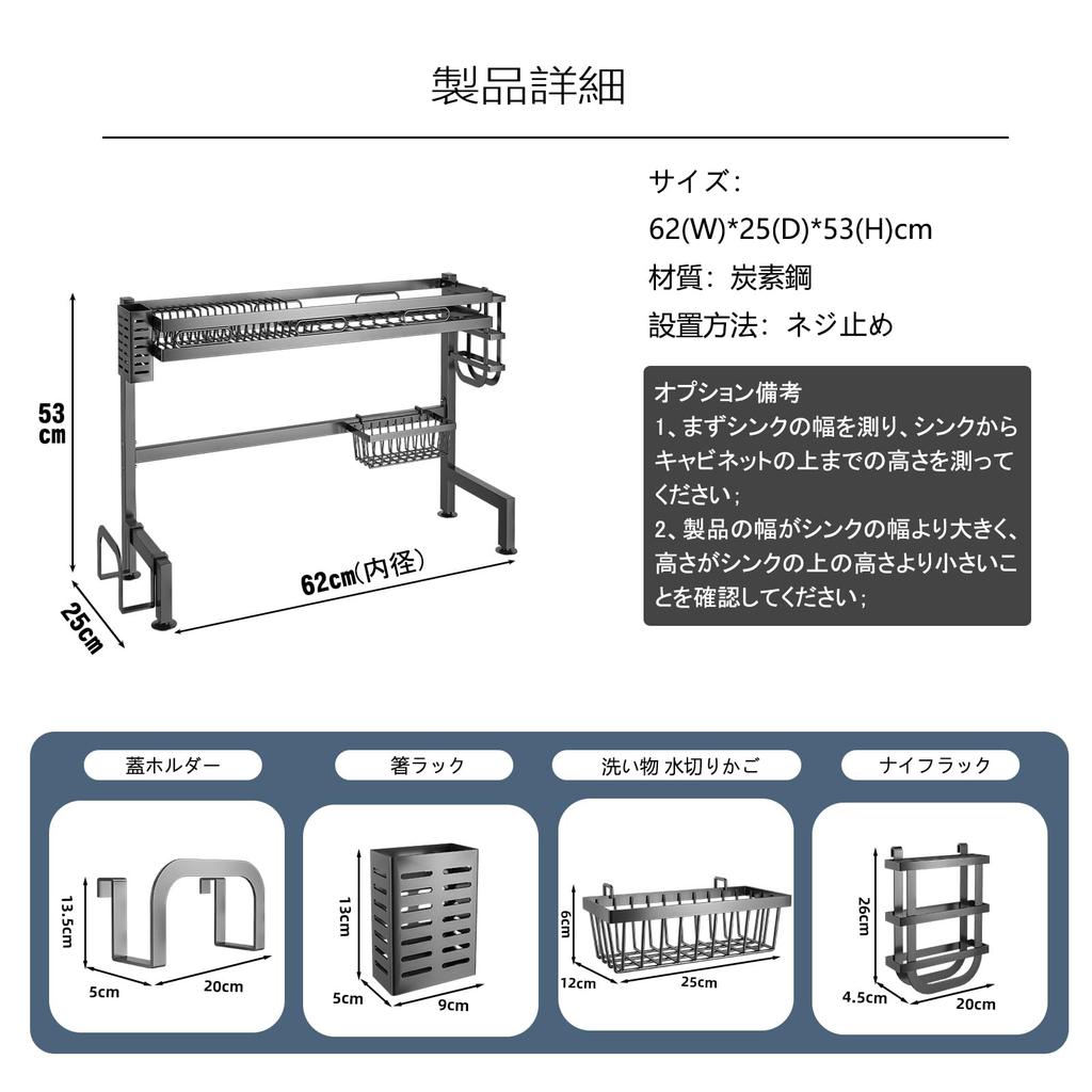 Информация о продукте Название продукта: Материал интегрированной сушилки для посуды над раковиной Hoisimdy: Размер углеродистой стали: 62*25*53см Вес: 3.61кг Способ установки: Навинчивающийся