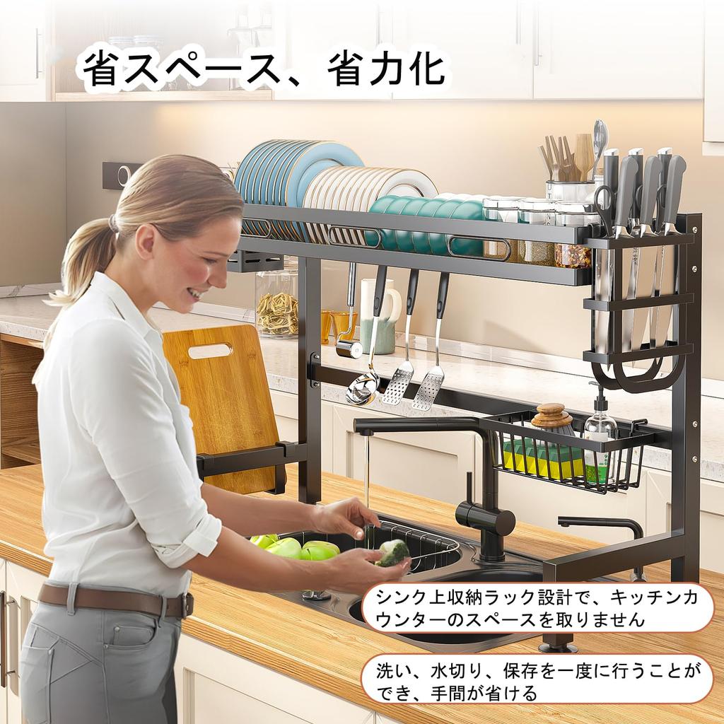 [Большая вместимость сушилки над раковиной] Конструкция позволяет сушить и хранить посуду во время мытья, эффективно используя пространство над раковиной, не занимая места, и более энергоэффективна и безопасна. Особенно подходит для нужд хранения в съемных домах и квартирах, где кухонная столешница не очень большая.