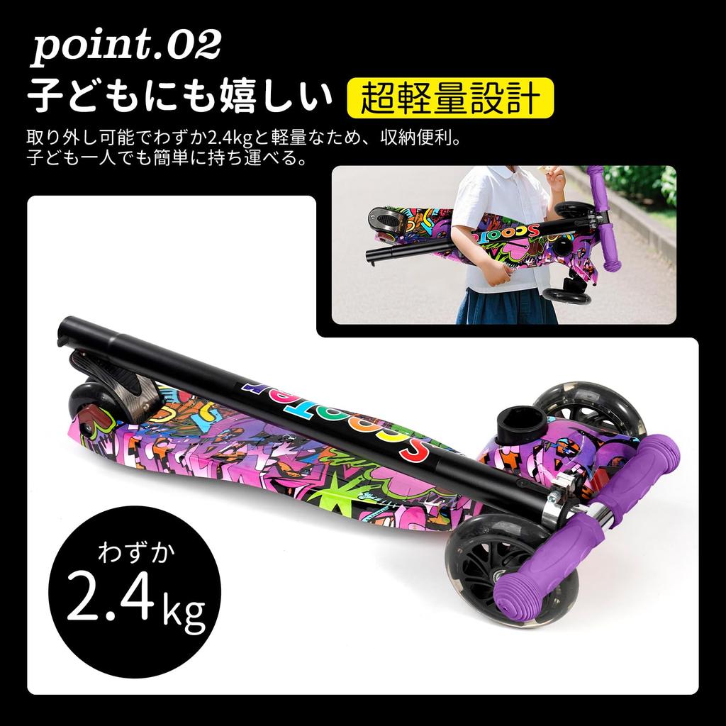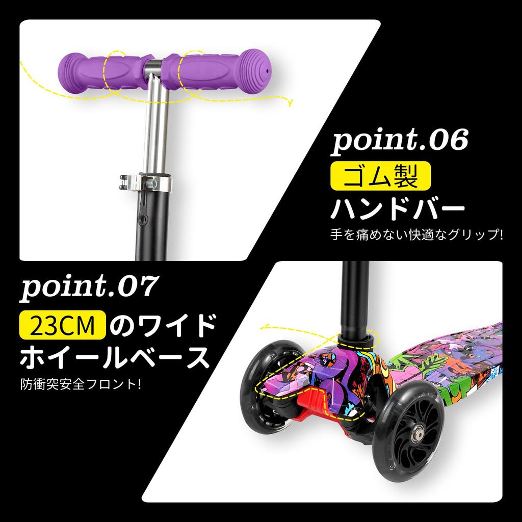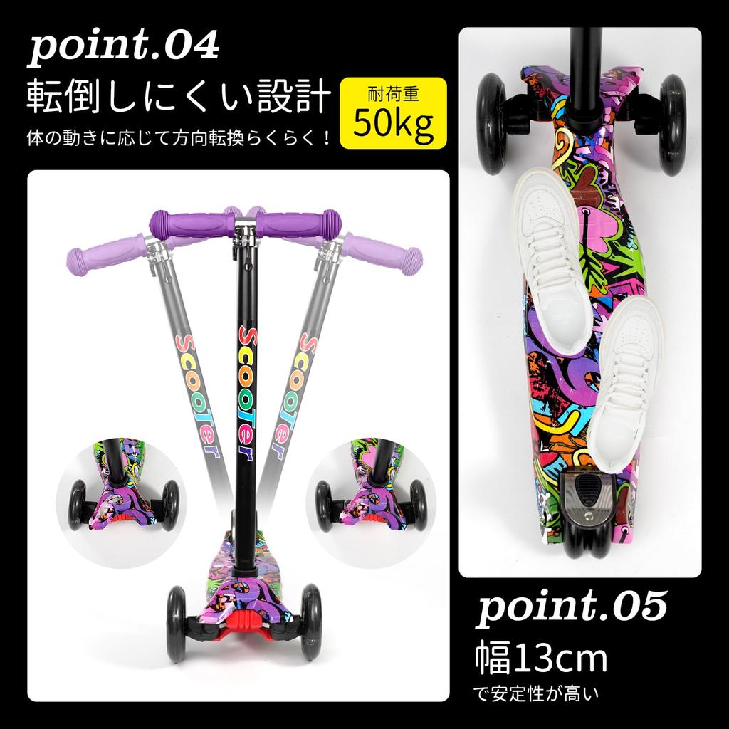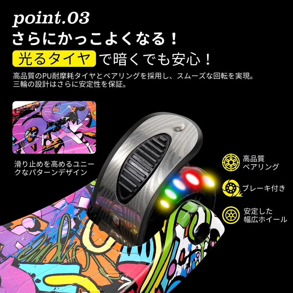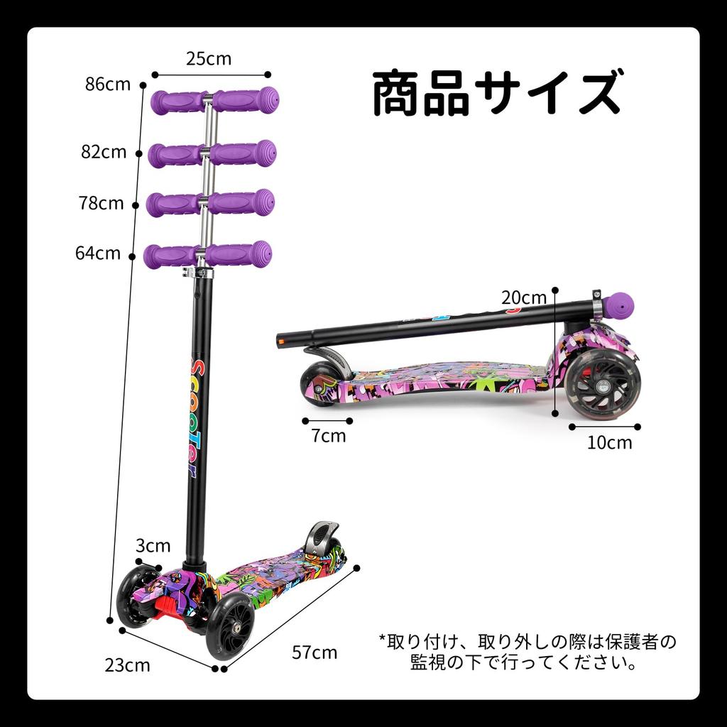 [Светящиеся светодиодные колеса и нескользящая дека] Оба колеса оснащены светящимися светодиодными колесами, не требующими батареек. Когда ваш ребенок катается на самокате, просто поверните колеса, и они загорятся разноцветными огнями.. Крутой внешний вид не только радует вашего ребенка, но и обеспечивает безопасность, делая его видимым в сумерках и ночью.. Он также поставляется с нескользящими педалями.