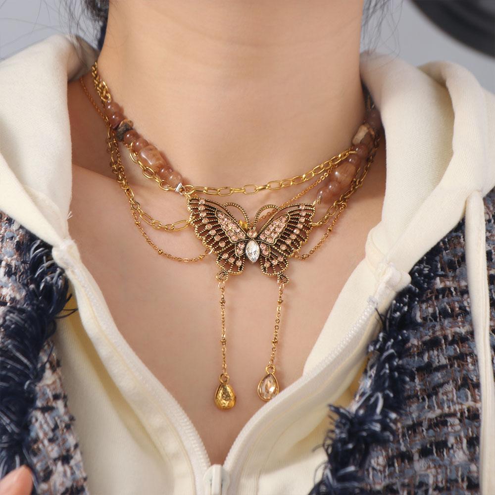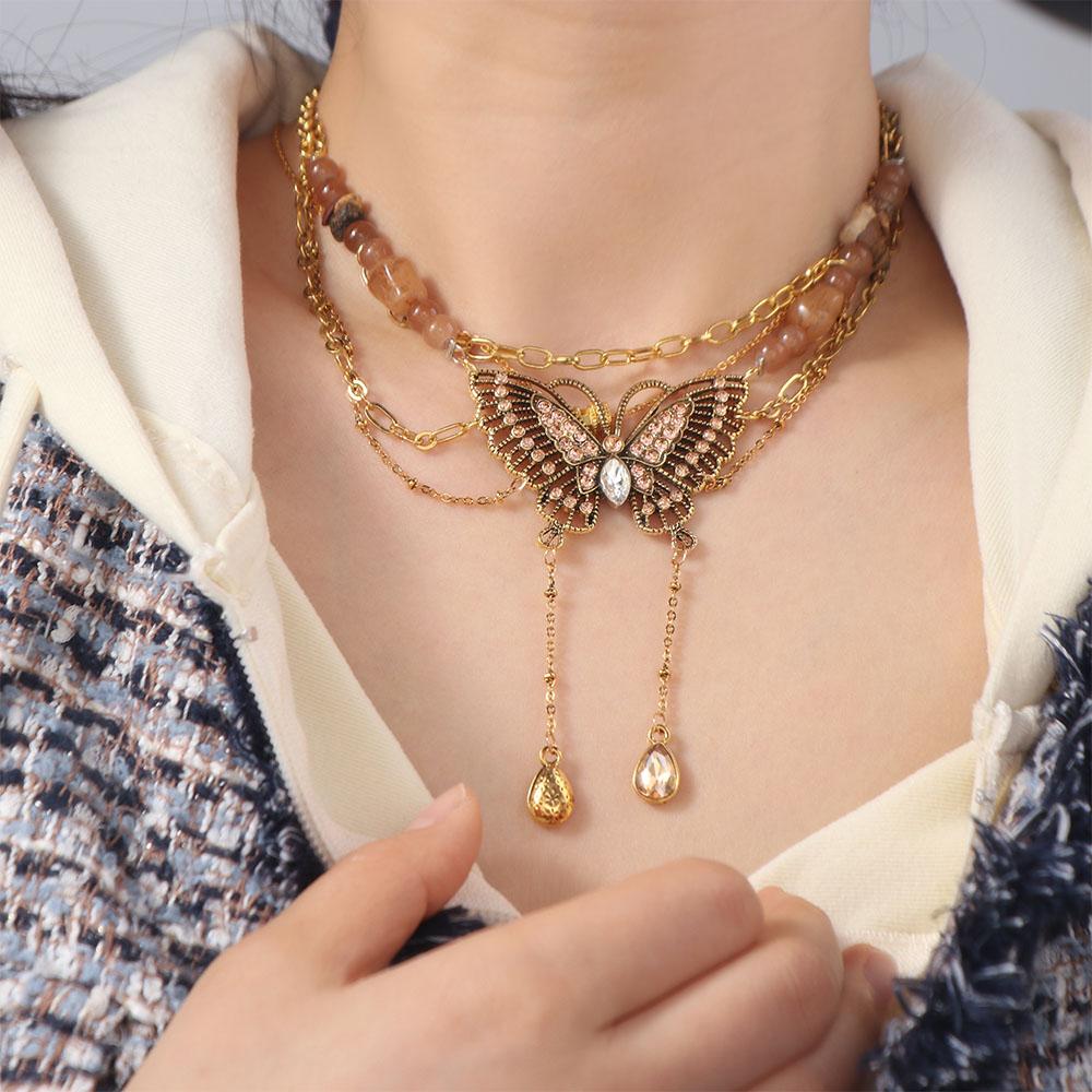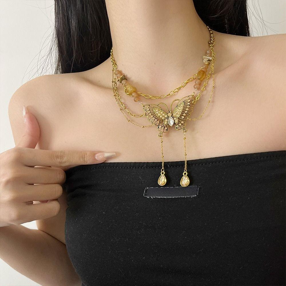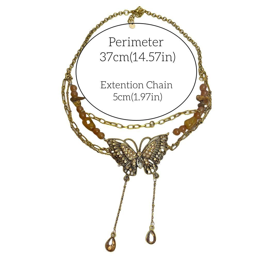 Vintge Sweet Butterfly Necklace Metal Multilayer Necklace Retro Collarbone Chain Women