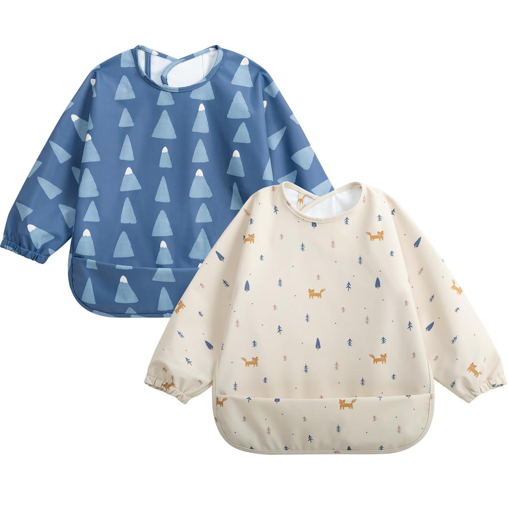 [Милый дизайн] Карманы с длинными рукавами имеют свежие цвета и милые узоры, идеально подходят для ношения младенцами во время еды, рисования, игр и других занятий, и защищают их одежду от загрязнения.