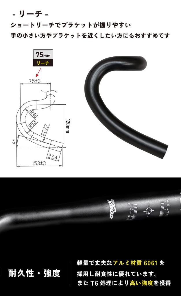 GORIX Руль-баран с расширением Руль с расширением Руль-баран Шоссейный велосипед Короткий вынос Широкие концы Удобный захват Велосипедный руль Грэвел (GX-CMM50) 31.8mm (400мм)
