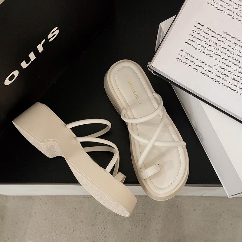 Silver Wedges Slippers Women Platform High Heels Summer Ladies Sandals 2024 New Gray Belt Cross Outdoor Shoes Zapatillas Mujer