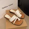 Женские ретро шлепанцы с низким каблуком и перемычкой между пальцами, женская летняя уличная обувь 2025, новая корейская версия, подходят к юбкам, римские пляжные прохладные шлепанцы