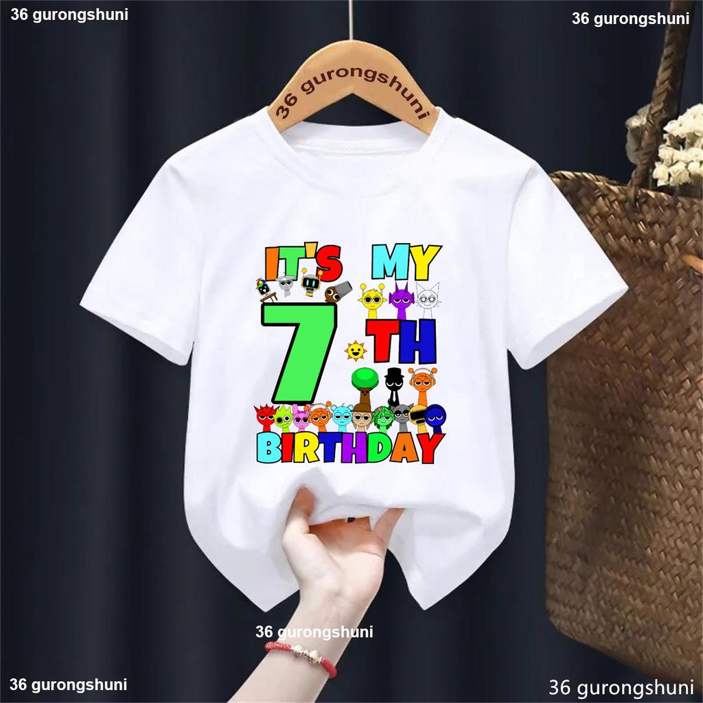 Новая футболка для мальчиков на день рождения Sprunki, футболка с мультяшным персонажем Sprunki для детей, футболки для мальчиков 5-8 лет It'S My Birthday Sprunki