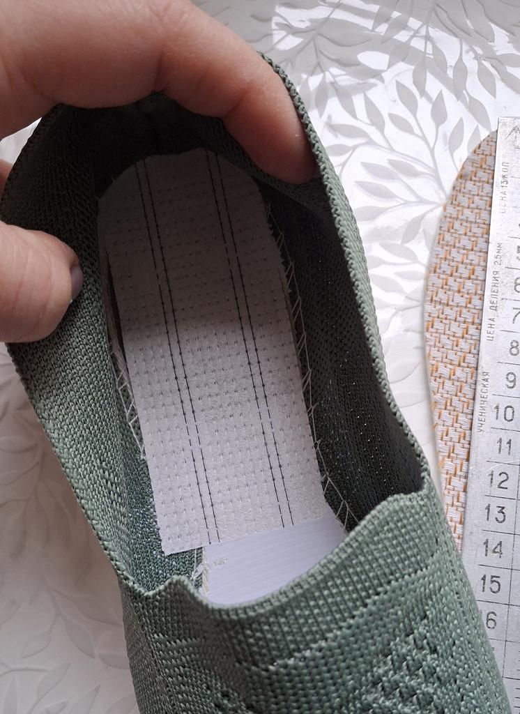 Трикотажные слипоны. У меня стопа 24,5 см, поэтому заказала 39-й размер. На сайте у продавца указано, что стелька как раз соответствует 25 см, но на деле это не так. На фото видно, что стелька меньше, и по длине слипоны тоже не подходят — они реально меньше ожидаемого. Кроме длины, главная проблема — ширина обуви. Моя нога средней ширины, не узкая и не широкая, но 39-й размер сильно сдавливает по бокам. Даже если бы я взяла 40-й размер, рассчитанный на стопу большего размера, сомневаюсь, что по ширине стало бы комфортно. Ранее у меня была похожая трикотажная обувь 39-го размера от другого продавца, и она подошла идеально. В ней я ходила всё лето с удовольствием. Планировала сейчас взять такую же зелёную модель, но после этой покупки теперь не знаю, что делать с новой парой. ⭐ Продавец упаковал товар в почтовый конверт с пупыркой внутри. ⭐ Трек номер отслеживался до почтового отделения. ⭐ В приложении пришло уведомление о готовности к выдаче заказа. ⭐ Доставка в Петербург заняла 25 дней.