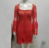 Женские платья весна-лето с длинными рукавами, кружевные, однотонные, плиссированные, с высокой талией, с квадратным воротником, короткое платье
