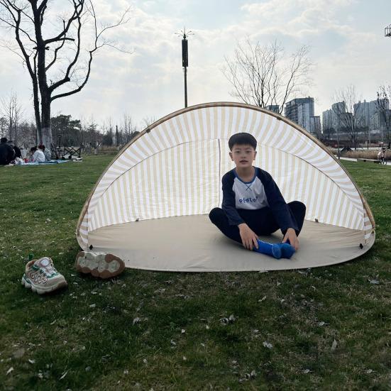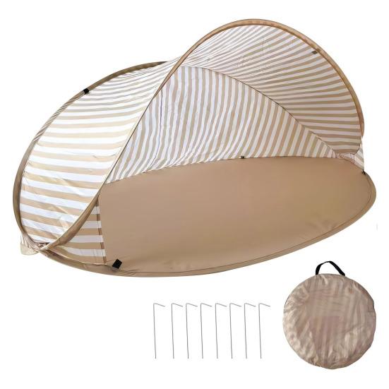 Удобство мгновенной настройки: Попрощайтесь со сложными установками! Благодаря своей автоматической конструкции-палатке, этот пляжный тент можно без усилий собрать за считанные секунды.. Надежно закрепите палатку к земле с помощью прилагаемых колышков для дополнительной устойчивости.