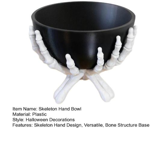 Поразительный дизайн руки скелета: Поднимите свой хэллоуинский декор на новый уровень с помощью эффектной пластиковой миски в виде руки скелета, которая гарантированно привлечет внимание.. Съемная черная чаша надежно фиксируется между пальцами, обеспечивая прочный захват для уникальных экспозиций.