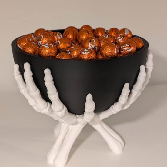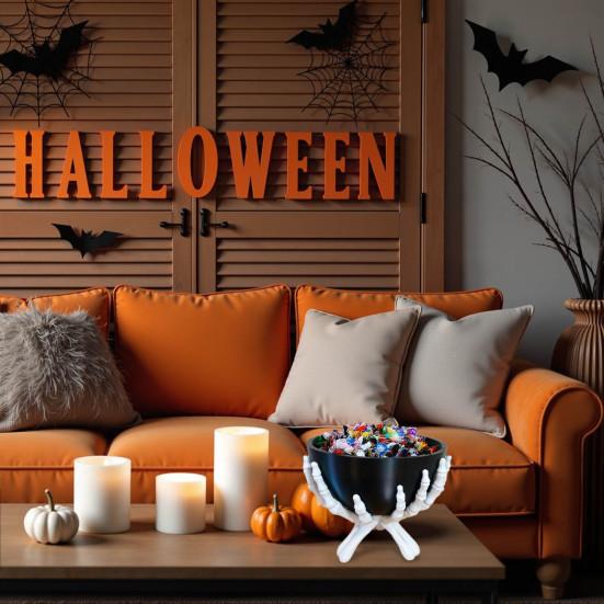 Добавьте нотку жуткой элегантности в ваш хэллоуинский декор с миской в виде скелетной руки. Это эффектное украшение обязательно привлечет к себе внимание и поднимет ваше жуткое оформление на новый уровень.. В комплект входит съемная черная чаша, которая плотно входит в пальцы скелета, обеспечивая надежную фиксацию.