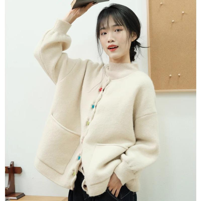 DIMANAF Большой размер Осень Женский Однотонный Пуговицы Свитера Куртка Вязание Мода Оверсайз Повседневный Стиль Свободный Кардиган Свитер