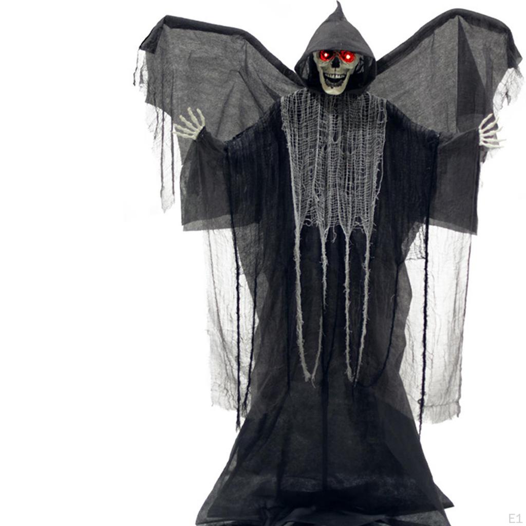 - 【Декор на Хэллоуин】:Этот Хэллоуинский Подвесной Жнец с , подходящий для создания леденящей, жуткой или веселой праздничной атмосферы. Его светящиеся глаза и жуткие звуки мгновенно усиливают атмосферу Хэллоуина.
