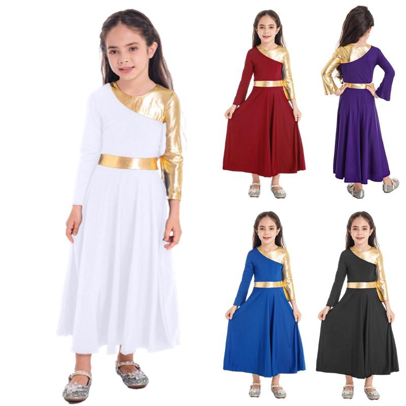 Детское литургическое танцевальное платье для девочек с расклешенным низом и длинными рукавами, лирические платья, костюм для поклонения, церковь