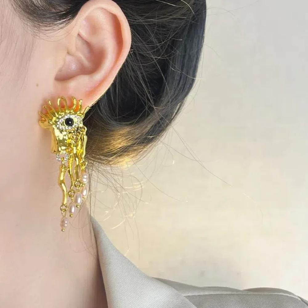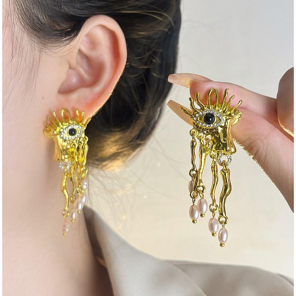 Серьги-пусеты «Уши Глаза Демона» с жемчугом, женские серьги-пусеты «Глаз Дьявола» для девочек