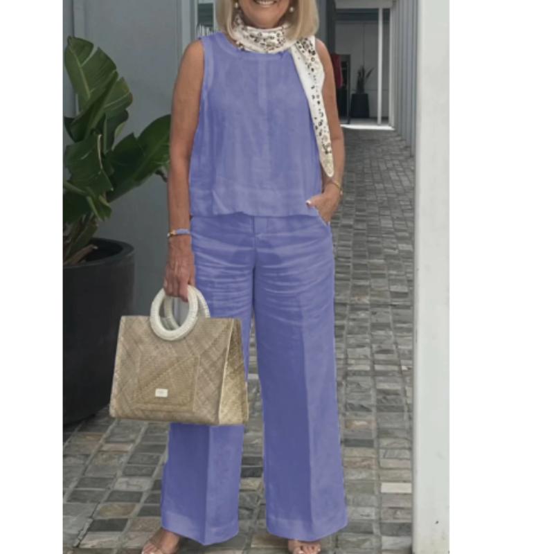5XL хлопковые льняные женские костюмы, летняя модная свободная блузка без рукавов, широкие брюки, комплект из двух предметов для женщин, повседневная одежда