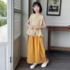 Летний костюм среднего размера для девочки, жилет с вышивкой, брюки с широкими штанинами, модный комплект