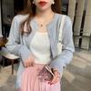 Весенне-осенний кардиган с длинным рукавом, женская вязаная куртка, модный тонкий свитер 2025, элегантный вырез лодочкой, облегающий крой, однотонный, новая короткая верхняя одежда — купить товар онлайн с бесплатной доставкой по всему миру!