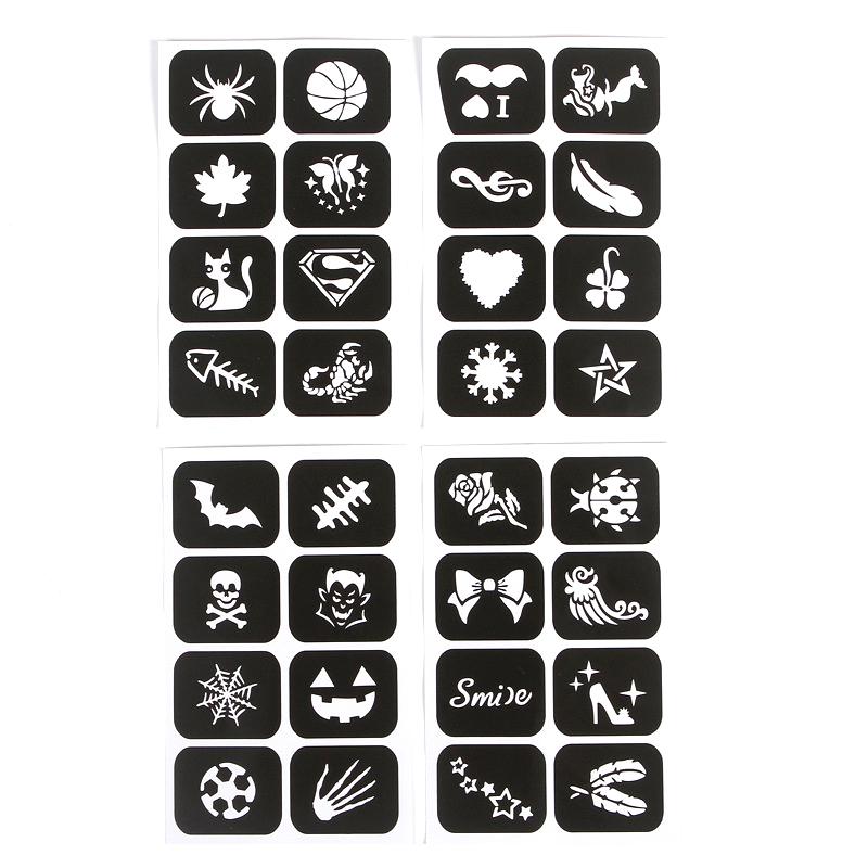 Хэллоуин Лицо Детские Татуировки Шаблоны Окрашенные Трафареты Блестящая Аэрография Детское Лицо Краска Татуировки Трафарет (Случайные узоры))