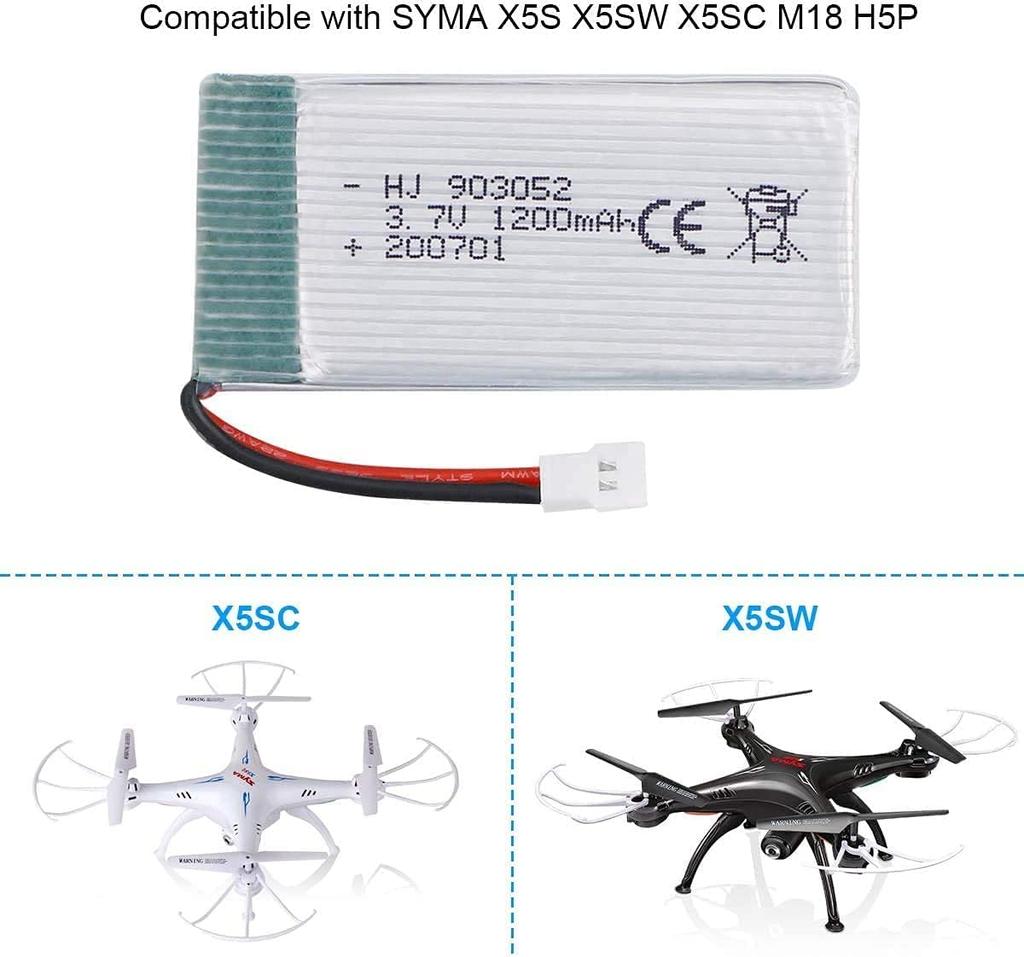 Set of 4 Rechargeable LiPo Batteries 3.7V 1200mAh | Compatible with RC Drones Syma X5SC X5SW | Extended Flight Time 15 Min | Lightweight, Silver