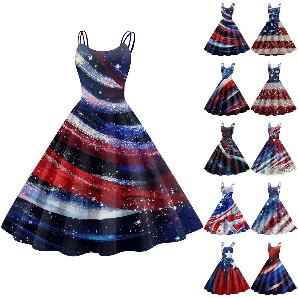 Женское сексуальное платье с открытыми плечами в стиле панк-винтаж с принтом «День независимости» — купить товар онлайн с бесплатной доставкой по всему миру!
