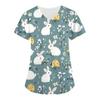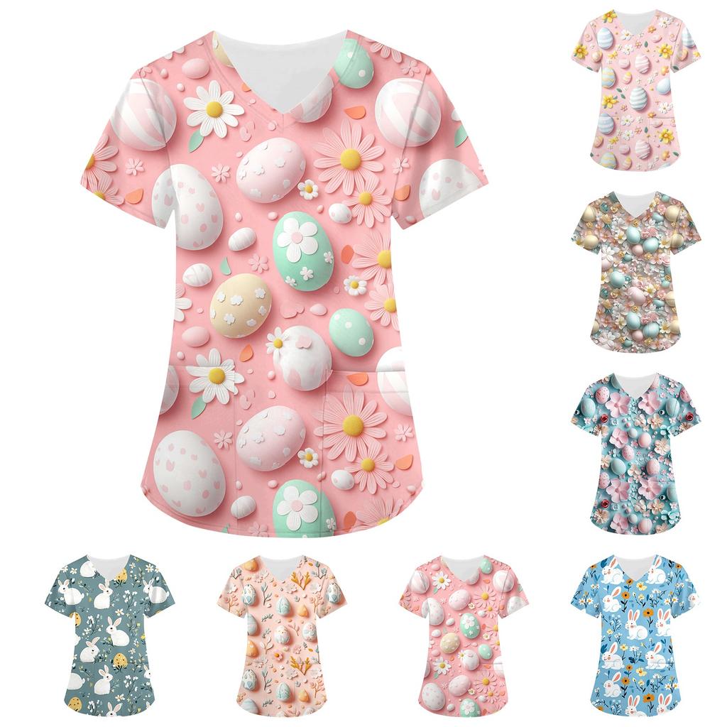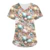 Женский свободный свитер с принтом пасхального яйца, V-образным вырезом, карманом, коротким рукавом