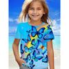 Детская одежда Одежда для девочек Футболка с коротким рукавом для девочек Милая бабочка с принтом Kawaii Круглый вырез для девочек Летняя детская одежда