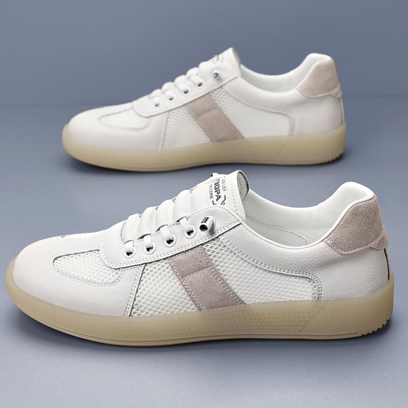 Летняя новая мужская обувь полая дышащая маленькая белая обувь сетка на плоской подошве ретро кеды