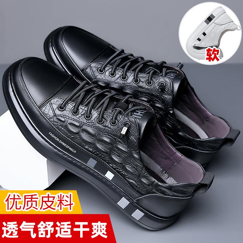 Cowhide little white shoes men's trend fashion 2021 spring and autumn sports casual shoes men's shoes new board shoes — купить товар онлайн с бесплатной доставкой по всему миру!