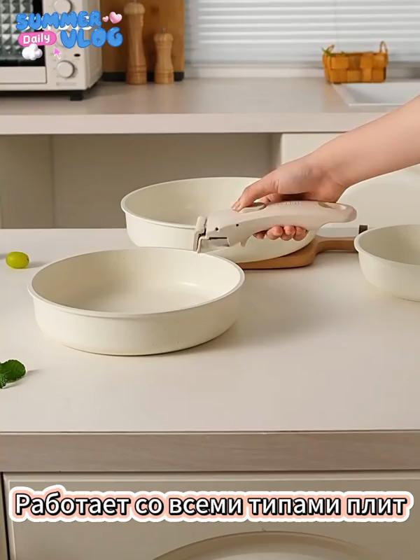 Съемная ручка Набор посуды Гранитное покрытие Антипригарные кастрюли Кастрюля для молока Сковорода Сотейник Компактный кухонный набор Штабелируемое хранение Индукционная плита Кастрюля