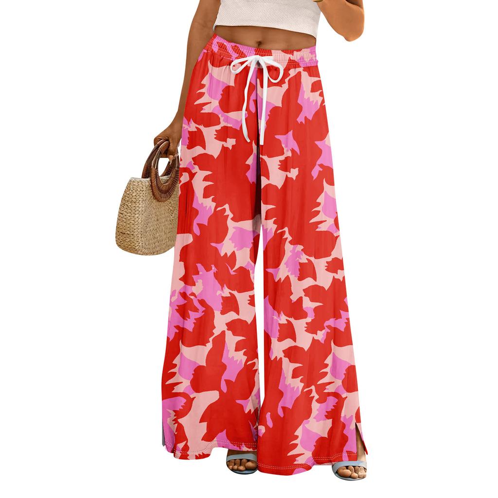 Женские летние брюки-палаццо в стиле бохо с высокой талией, широкие повседневные брюки с цветочным принтом и карманами