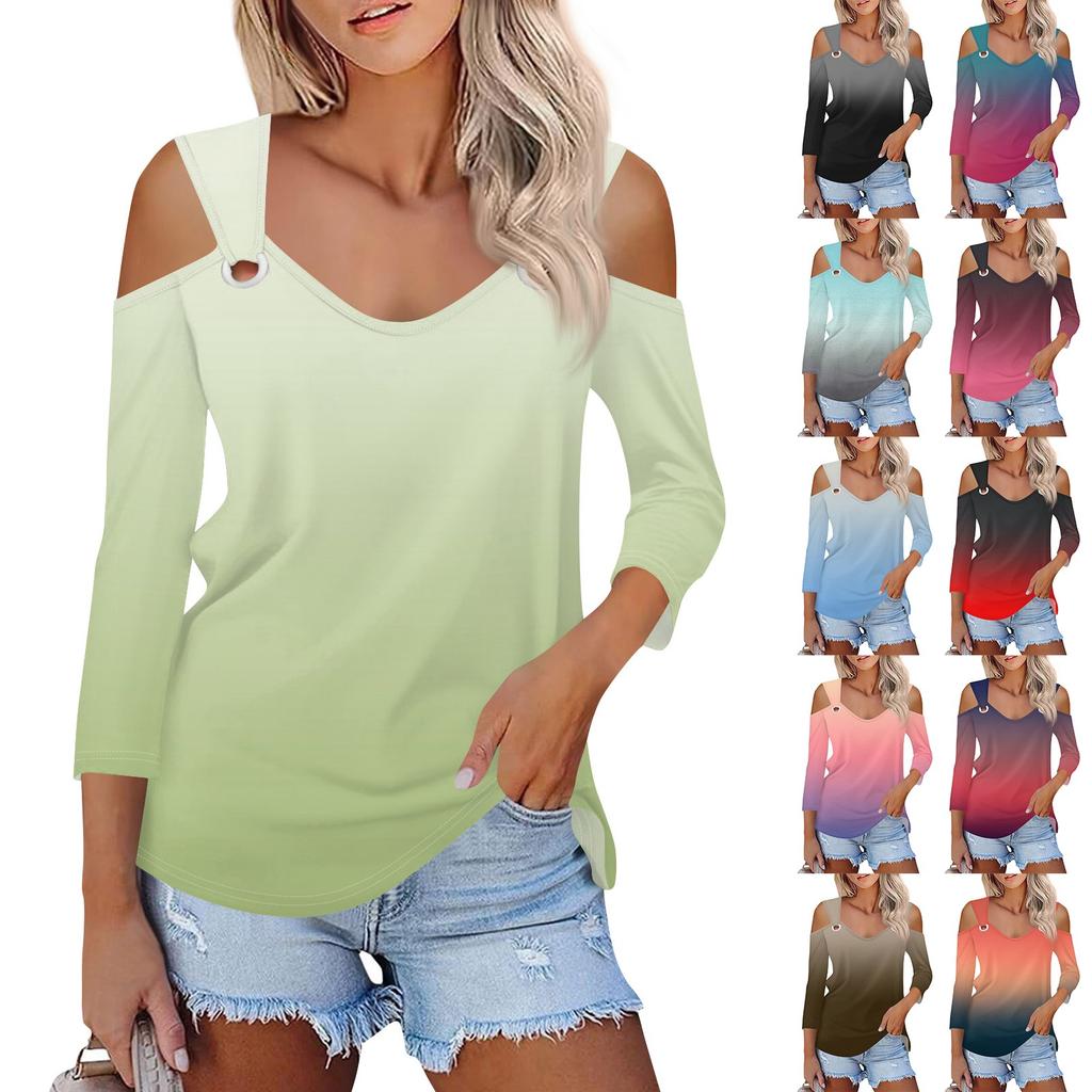Женская повседневная рубашка-блузка с v-образным вырезом и принтом, сексуальный топ с открытыми плечами и рукавами 3/4