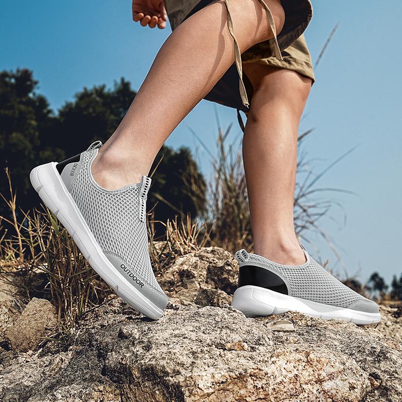 Мужские кроссовки для бега на открытом воздухе, сетчатый дизайн, амортизация, противоскользящие, сверхлегкие, сетчатые, большие, повседневные, спортивные туфли на одну ногу