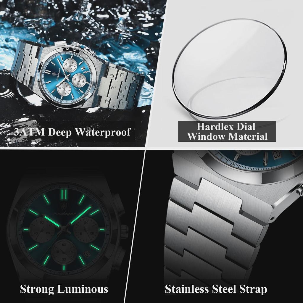 Роскошные часы для мужчин кварцевые деловые мужские часы водонепроницаемые светящиеся мужские часы из нержавеющей стали с хронографом