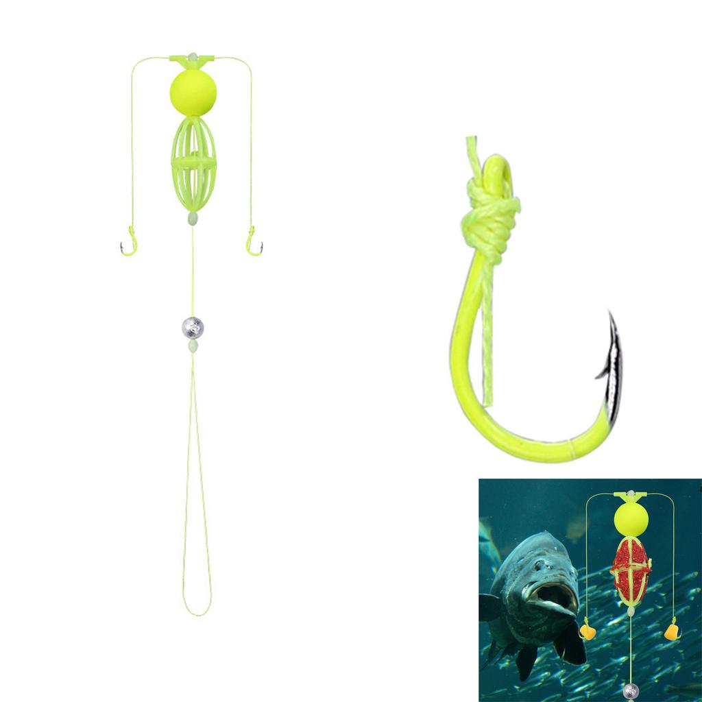 Плавающая кормушка-клетка с двойным крючком, рыболовная мягкая приманка, стальной поводок для усиления привлечения рыбы