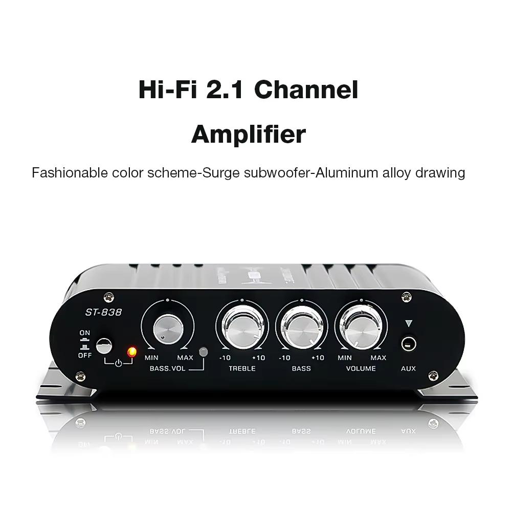 ST-838 HiFi 2.1-канальный усилитель мощности с регулировкой низких и высоких частот 80 Вт * 2 стерео басовый звуковой усилитель сабвуфера черный автомобильный домашний усилитель